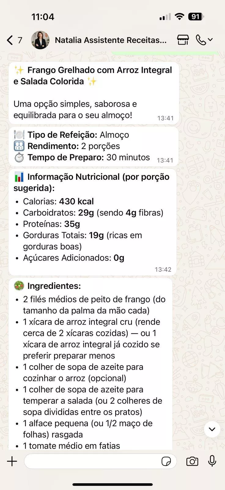 Conheça a NATALIA, sua nova assistente de receitas no WhatsApp que te ajuda a escolher comidas gostosas e seguras para você